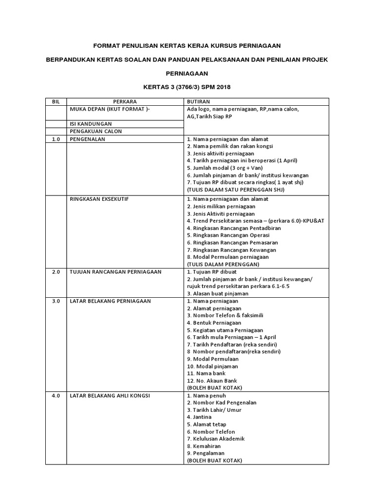 Format Penulisan Kertas Kerja Kursus Perniagaan Pdf