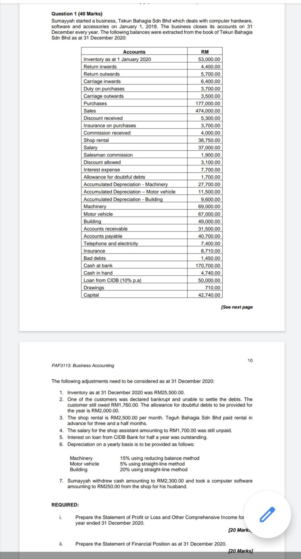Solved Question 1 40 Marks Sumayyah Started A Business Chegg Com